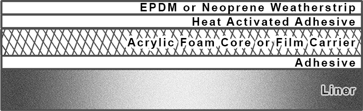 An extremely aggressive, very high strength acrylic foam adhesive that bonds with superior holding power to most surfaces, including automotive paints and metals. It offers the most versatile and robust method for applying seals and is designed to be used in dynamic sealing applications. (The HATS variation is laminated to Neoprene seal profiles). Clean Seal uses high tech heat-laminating equipment to thermally bond the ST and HATS adhesives to the extruded seal. This thermal lamination process ensures a strong, reliable, inseparable bond of the adhesive to the seal profile.